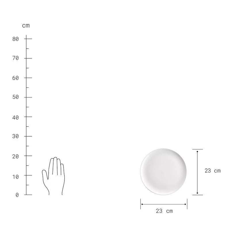 - Assiette à dessert : Ø 23 cm / Hauteur 2,5 cm